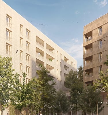 Composée de 188 unités meublées (du studio au coliving T5), la résidence Upsilon allie design contemporain et confort quotidien.